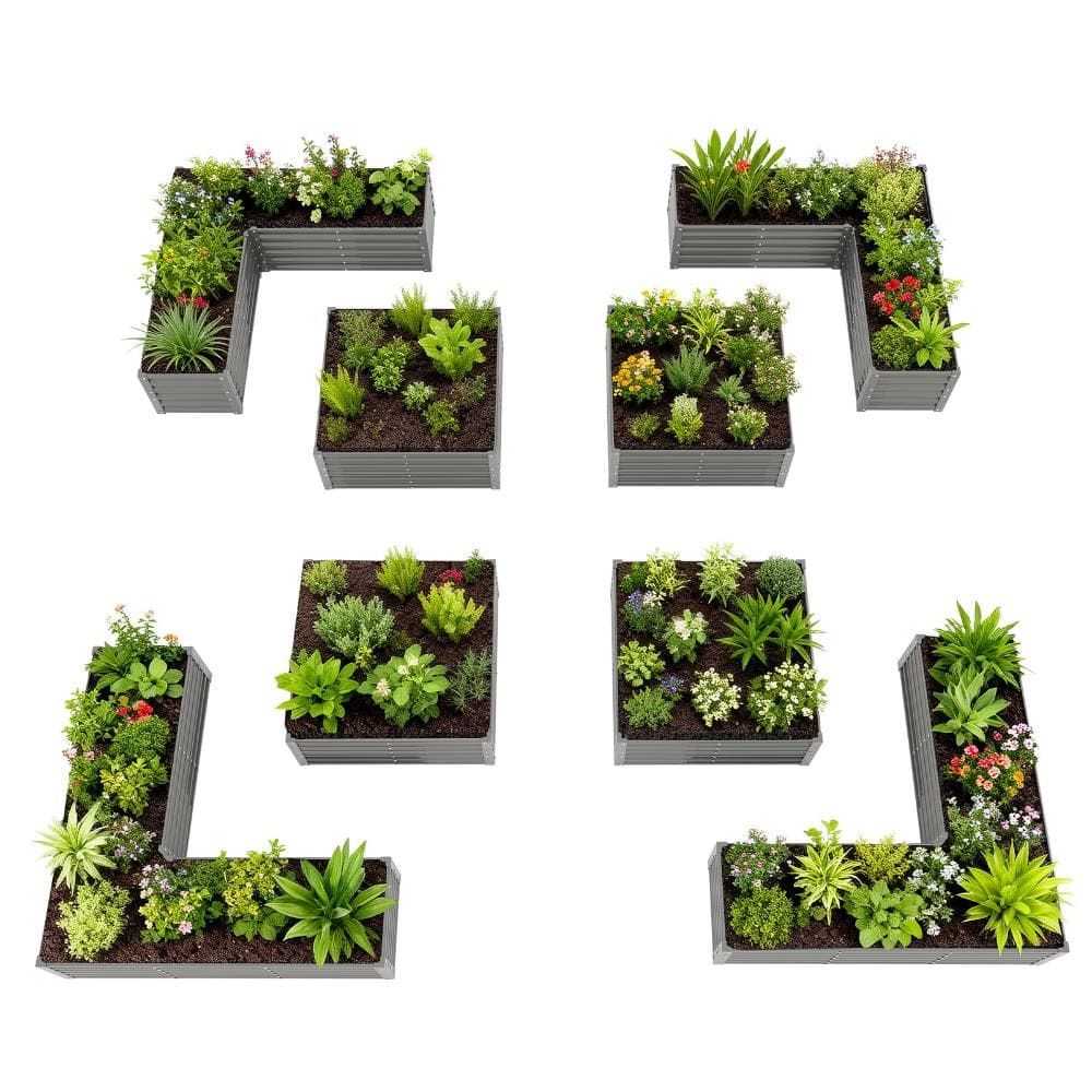 8-Piece Gray Metal Raised Garden Bed for Flexible Backyard Layouts shopping snapshot
